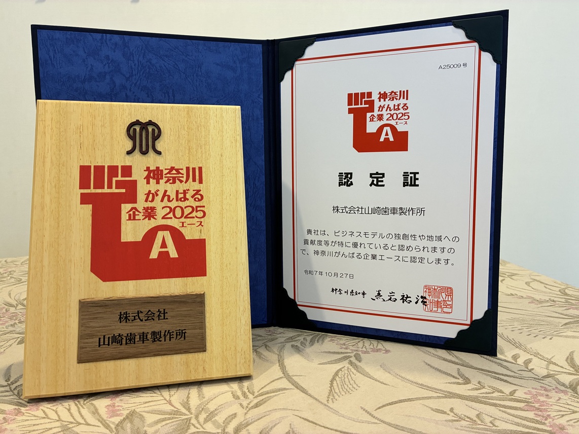 株式会社山崎歯車製作所は、この度、神奈川県より「神奈川がんばる企業2025」および「神奈川がんばる企業エース2025」という栄誉ある認定をいただきました。